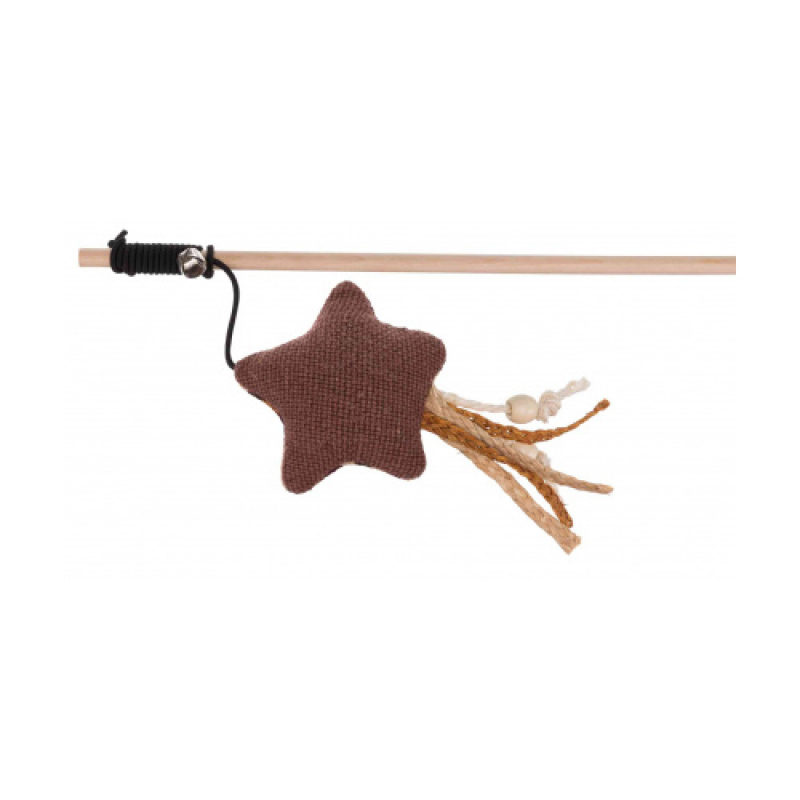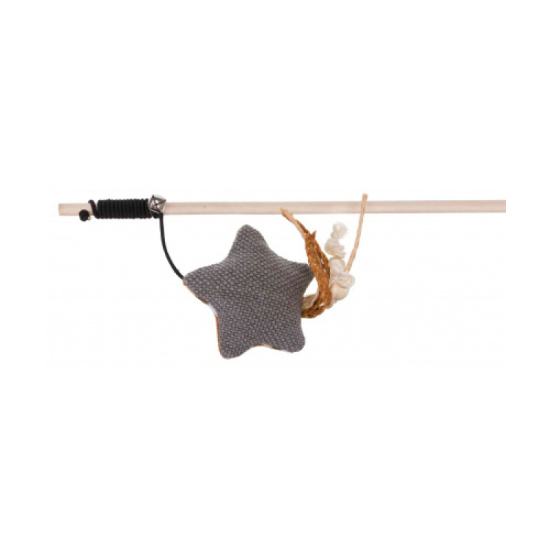 woven fabric (polyester/paper yarn), wood fabric toy on a string with bell