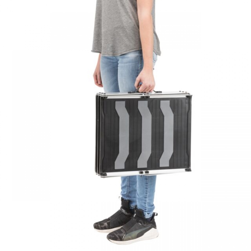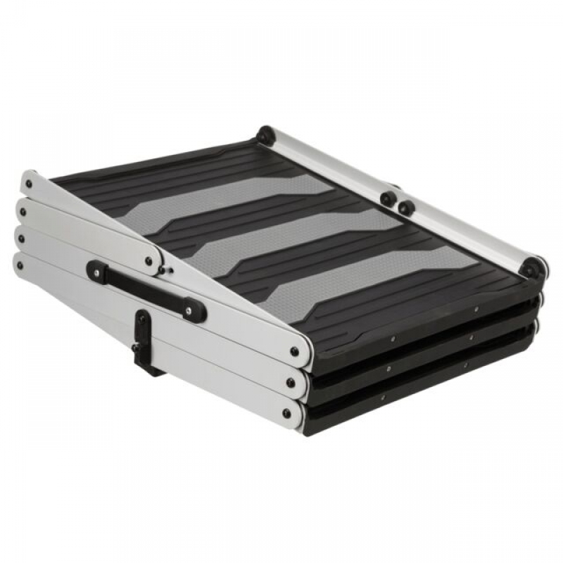 non-slip surface even in wet conditions convenient to handle space-saving storage includes bumper protection adjustable to 2 tread depths weight 3.9 kg aluminium/plastic/TPR compliant with animal welfare under Section 18 (AT) This offer is not intended for customers resident or domiciled in Switzerland. We will not process such orders. No deliveries will be made to Switzerland. Measurements: width: 37 cm/height: up to 57 cm/depth: up to 120 cm, up to: 75 kg
