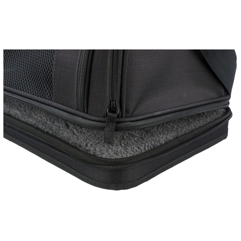 Measurements: 28 × 25 × 45 cm, up to: 7 kg ideal as carry-on luggage on a plane accepted by most airlines can be attached to trolley can be opened at the side, top and front with outside pocket removable shoulder strap with integrated short lead padded and waterproof bottom plate, removable shape-retaining EVA with high quality polyester
