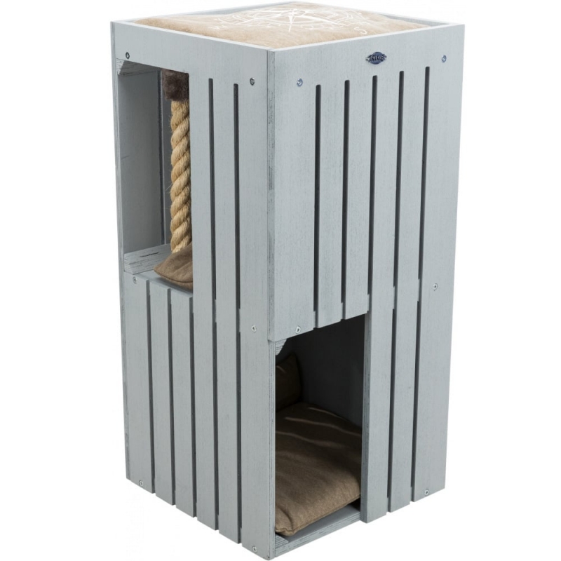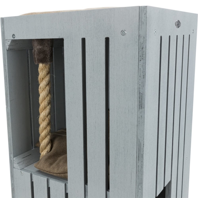 Measurements: 77 cm Floor area: 38 × 38 cm Colour: grey Height: 77 cm sisal/plywood (varnished)/canvas 2 reversible cushions: washable by hand cuddly bed with reversible cushion: washable by hand colour: grey/san