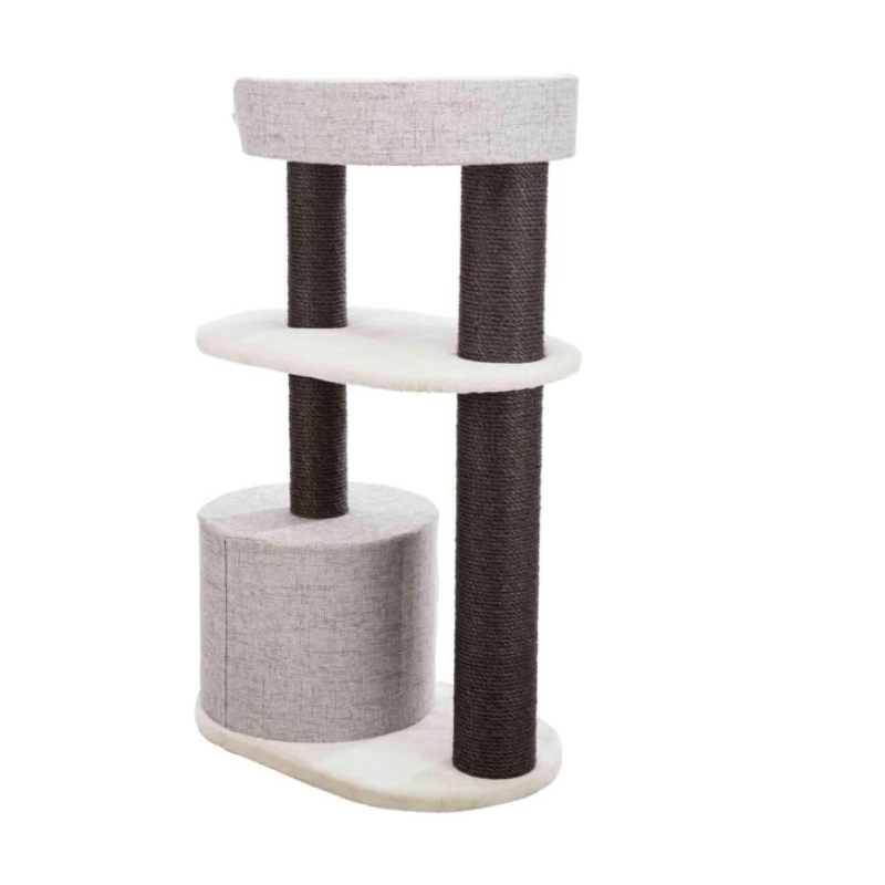 Measurements: 128 cm Floor area: 78 × 48 cm Post: ø 15/12 cm Colour: white/grey Thread Size: M8 Height: 128 cm Especially suitable for large cats sisal: ø 8 mm/plush (polyester): 400 g/m²/fabric (polyester) cuddly bed with padded rim cave fitted with plush/fleece (polyester) and reversible cushion (hand wash) padded platforms colour: white/grey