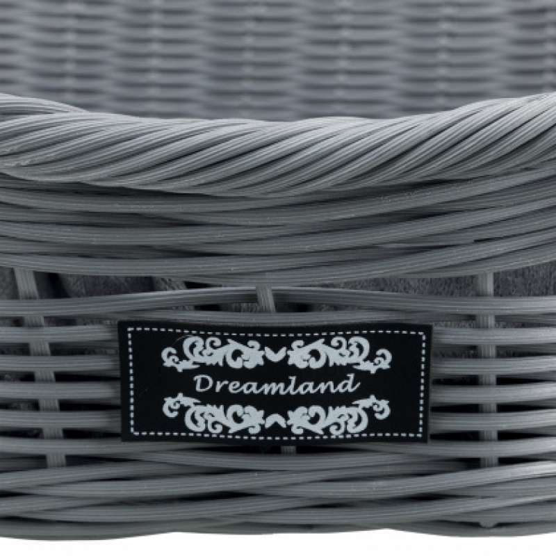 Measurements: 59 × 45 cm Measurements: 64 × 50 cm Measurements: 70 × 51 cm polyrattan cushion with plush cover and polyester fleece filling, quilted cushion: washable by hand basket: weatherproof