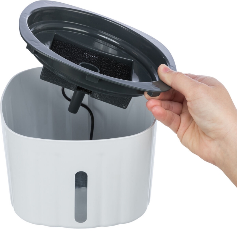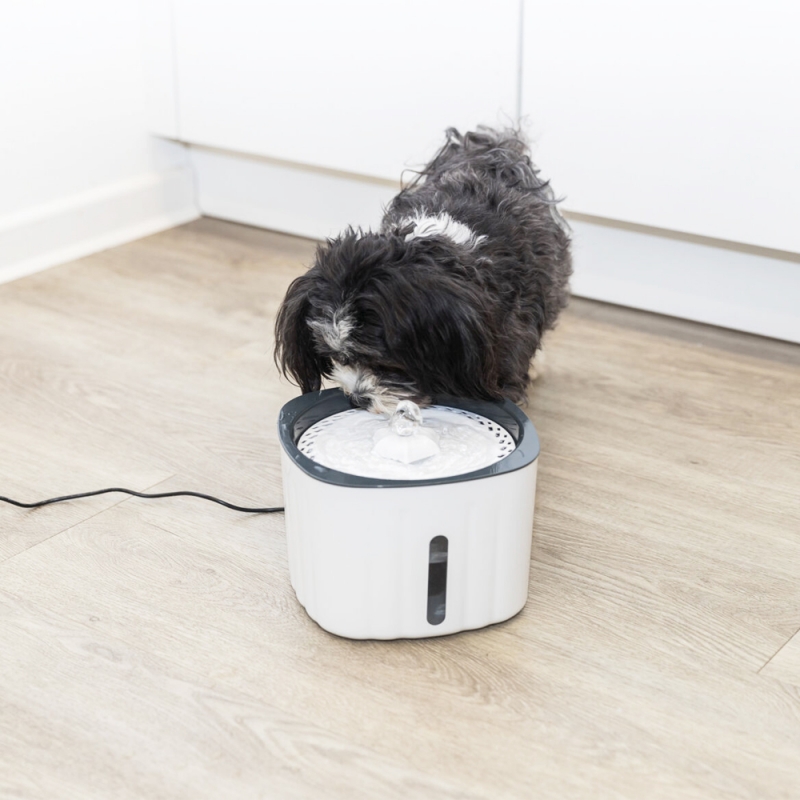 Measurements: 2 l/18.5 × 13 × 18.5 cm plastic level indicator for better content control enriches the water with oxygen cold water through circulation a filter cleans the water pump, interchangeable with USB plug and mains plug Drinking fountains ensure that your dog and cat is always supplied with fresh water. The water is cooled naturally by circulation and enriched with oxygen. The filters built into the drinking fountains also ensure better water quality.