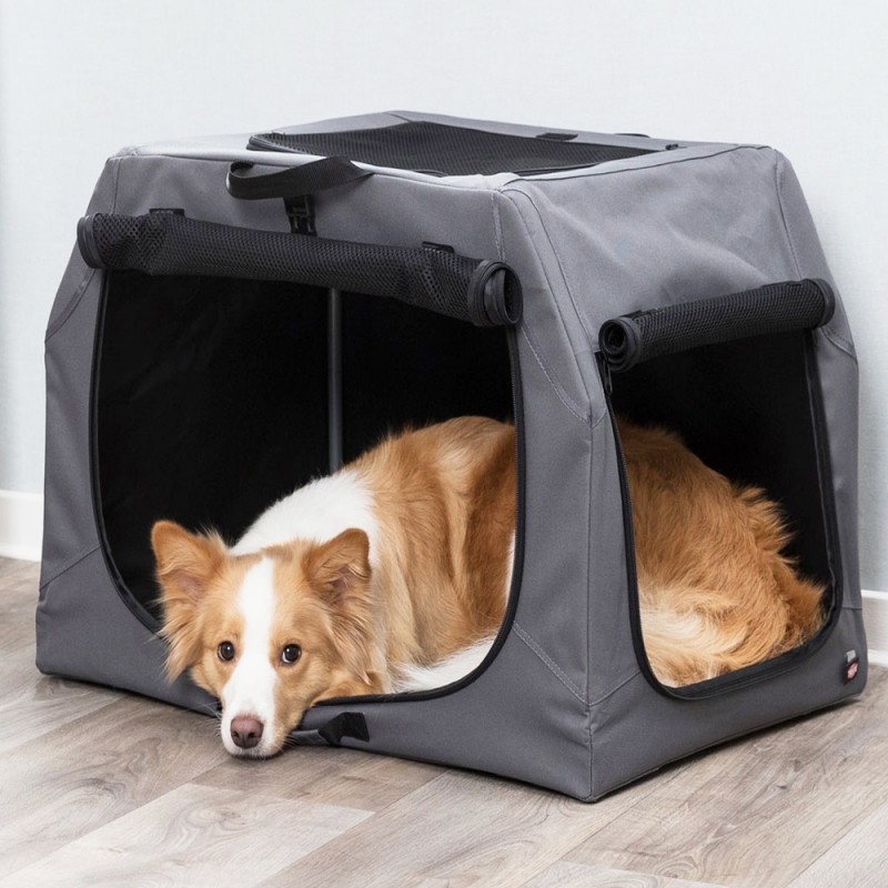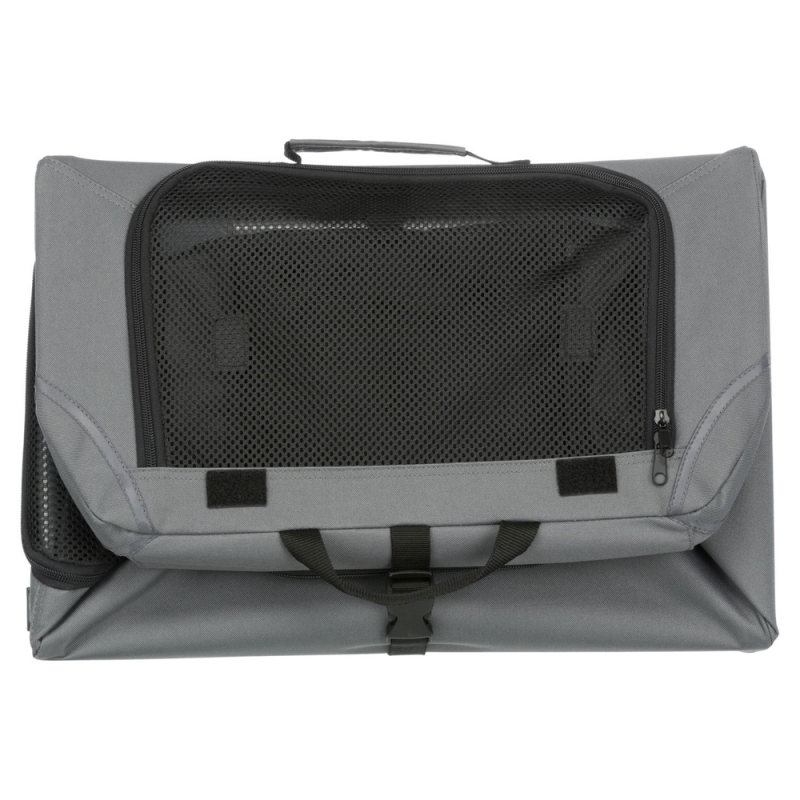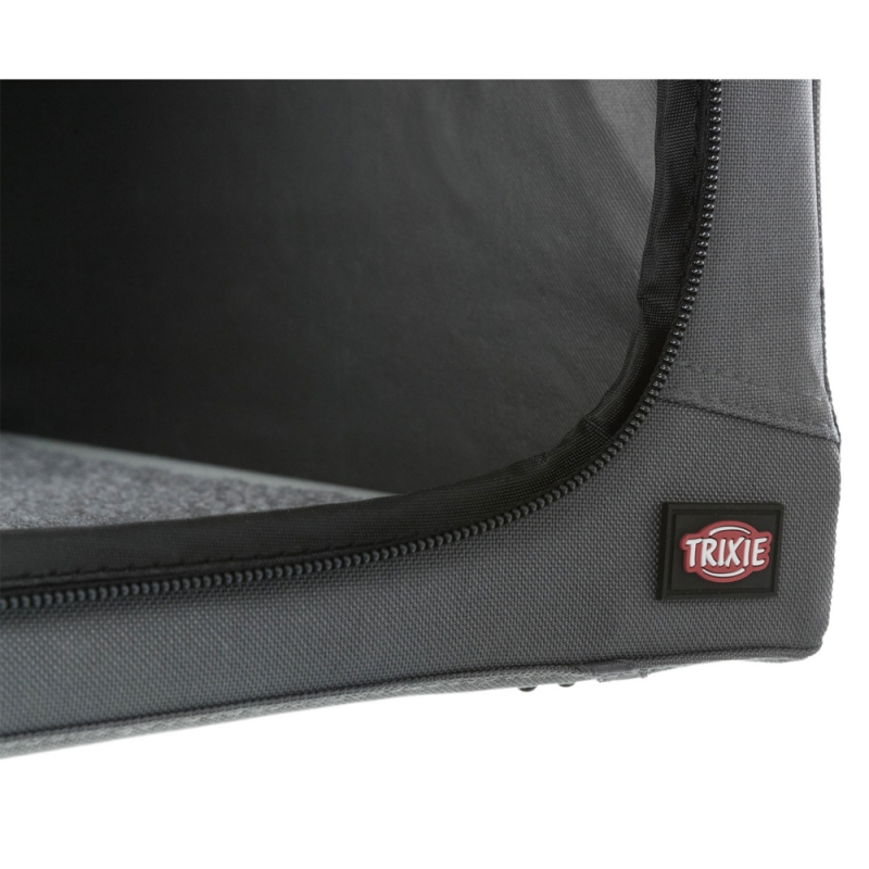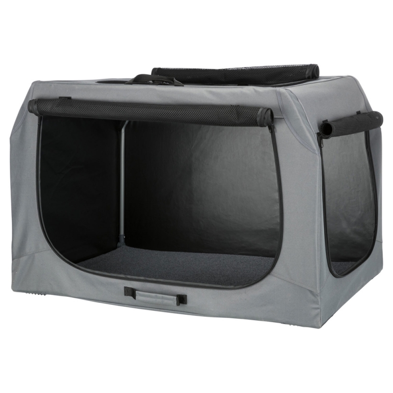 Size: XS-S Measurements: 50 × 33 × 36 cm Size: S-M Measurements: 71 × 49 × 51 cm Size: M-L Measurements: 95 × 63 × 69 cm polyester ideal place for the pet at home, on journeys or at shows door can be completely zipped closed with net inserts for good air circulation netting can be covered up to protect the pet inside with three side pockets can be secured with the flaps on the ground base plate with fleece cover quickly assembled and collapsed includes tent pegs with handy transport bag simply wipe clean
