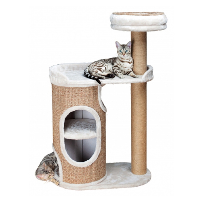 with plush cover posts wrapped in jute cave with sisal scratching surface and padded platform, 2 storeys platform with removable cuddly bed cuddly bed with reversible cushion: washable by hand colour: light grey/brown Floor area: 70 × 38 cm Height: 117 cm