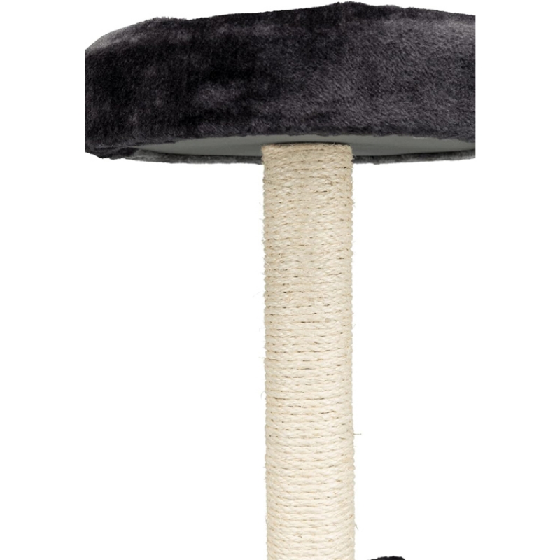 Measurements: 110 cm Floor area: 56 × 57 cm Post: ø 11 cm Height: 110 cm jute/felt (polyester) cuddly bed with padded rim with reversible cushion with two design versions: washable by hand platform with climb-through opening and hammock made of felt colour: light grey