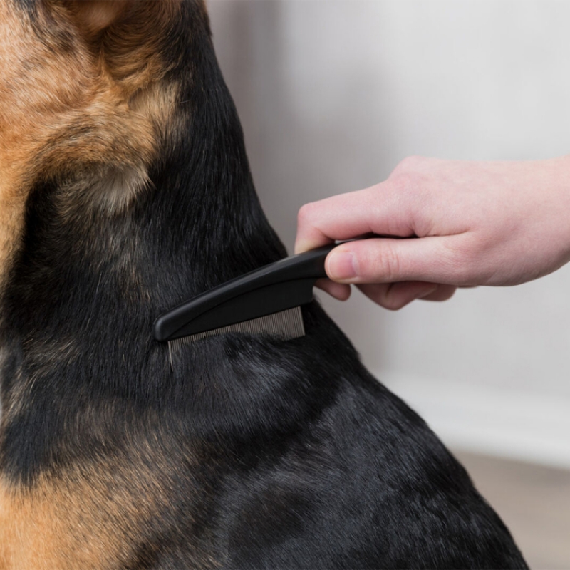 for discovery of fleas and lice with rounded teeth for gentle coat care plastic handle with non-slip rubber grip