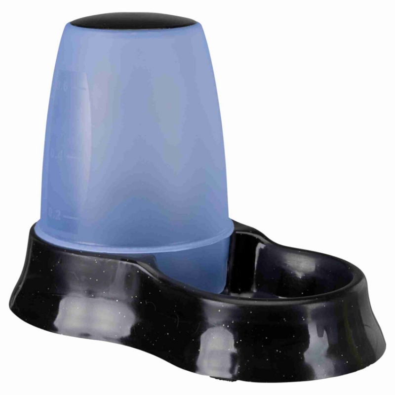 Measurements: 0.6 l/21 × 15 × 12 cm twistable container with two openings for water or food non-slip due to rubber feet plastic Dishwasher proof (please remove rubber parts before placing in dishwasher)