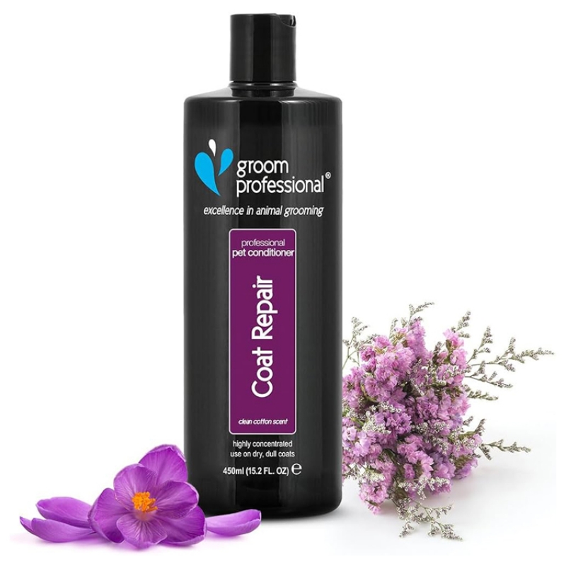 4 L The Groom Professional brand is fast becoming one of Europe’s favourite pet grooming brands and these shampoos are the driving force behind the brand’s success. All shampoos are manufactured in the UK and use top quality ingredients. Many natural extracts are used in the production of these shampoos to ensure a top quality finish. Most of the shampoos are designed with a specific need in mind, meaning there is something for every groomer and breed. Coat Repair Conditioner is designed to be used on brittle, listless and lifeless coats. Apply to a damp coat after shampooing, for a beautiful soft coat with condition. Will work on coats in the worst condition. It also adds shine, life and body to the coat. Coat Type - long, dry coats