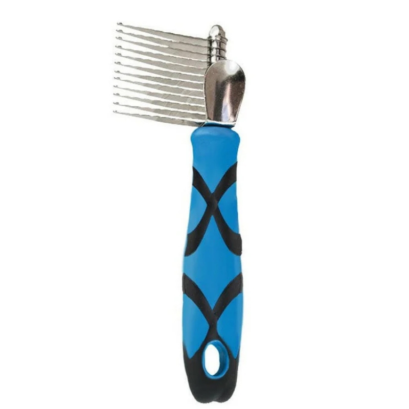 This Groom Professional dematting comb cuts through the worst matting with ease. Comfortable ergonomic grip, even with prolonged & professional use with a sturdy thumb rest which allows you to apply more pressure without losing grip. This comb can be adjusted for light and left handed use.