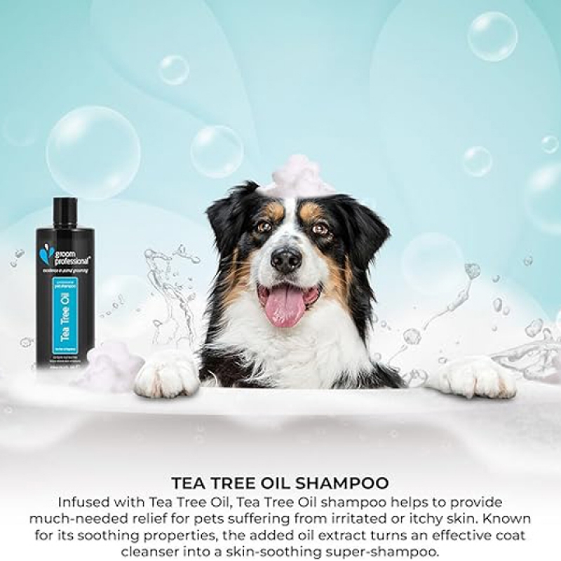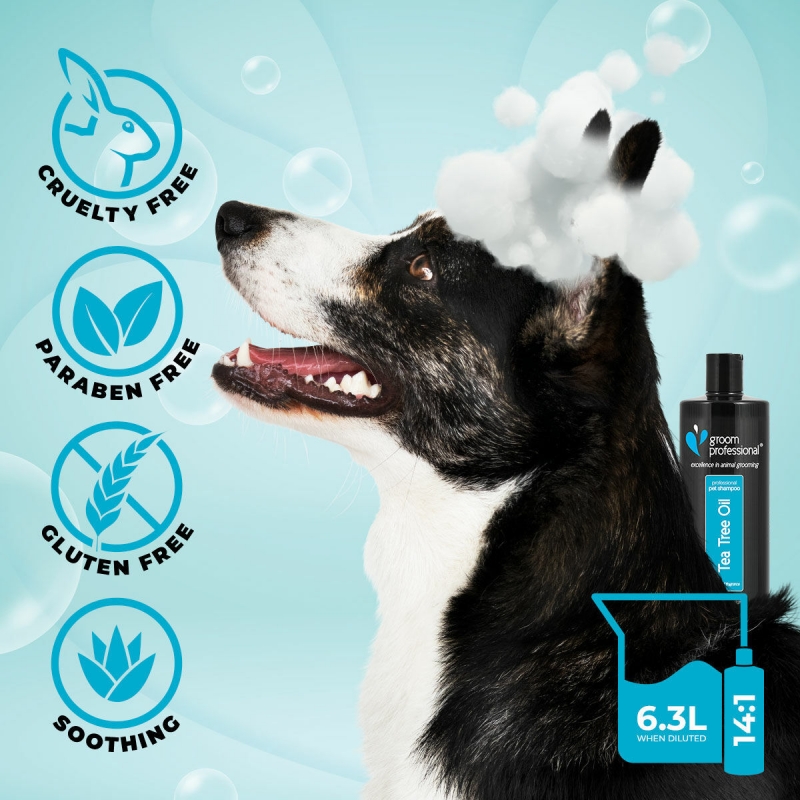 450 ml Tea Tree Oil Shampoo is one of the best selling products in the Groom Professional range. Tea Tree oil is an essential oil, which is well known for its soothing and healing properties making it perfect for irritated skin, or dogs suffering from flea bites. Tea Tree oil is primarily antiseptic in nature and is a recommended bactericide and fungicide, which readily heals scalp irritations and improves hair condition. Coat Type - irritated or bitten skin Soothes and helps heal Dilution 14:1 Suitable all coat types