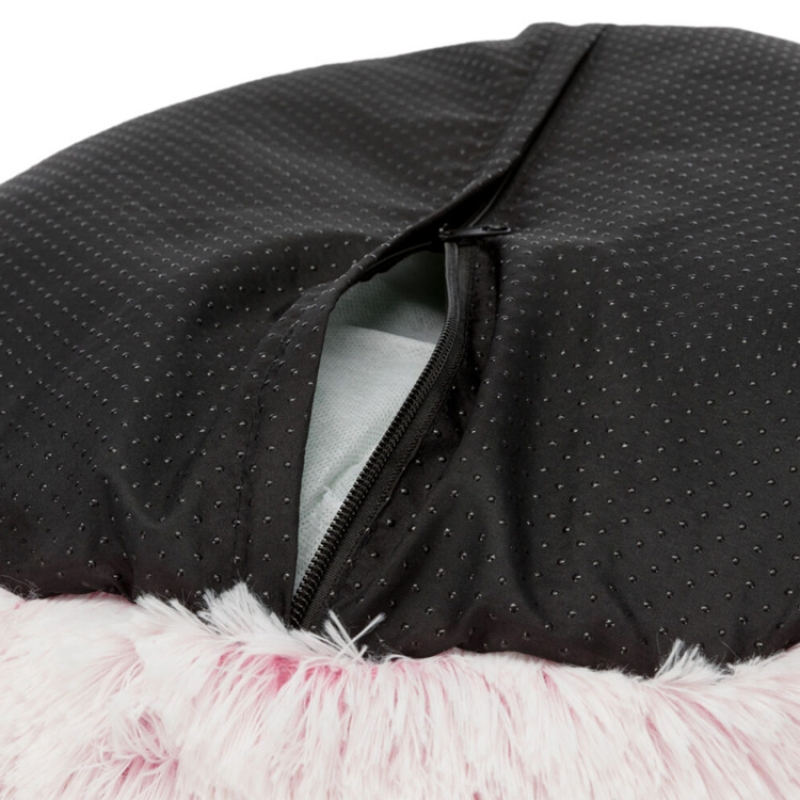Measurements: ø 50 cm Colour: white-pink long-haired plush polyester cover polyester fleece filling with firmly attached cushion non-slip bottom
