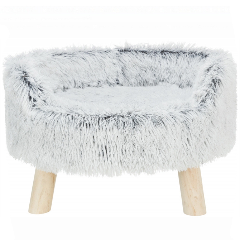 Measurements: ø 46 × 28 cm SOFT Edition long-haired plush polyester cover recliner made from solid wood, padded reversible cushion with cover made of long hair plush/suede look and polyester fleece filling with wooden feet up to 40 kg