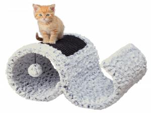with soft plush cover and sisal scratching surface with toy on string colour: mottled white