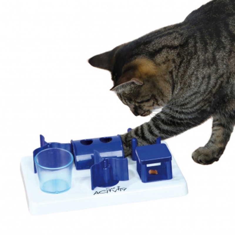 board game with lots of interesting options in 4 different modules of the game base board with 6 elements, can be individually placed physical exercise and mental stimulation trains the cat’s skills for cats from the age of 3 months up plastic non-slip due to rubber feet suitable for old or sick cats as well incl. booklet with tips and tricks for optimal training Measurements: 24 × 16 cm
