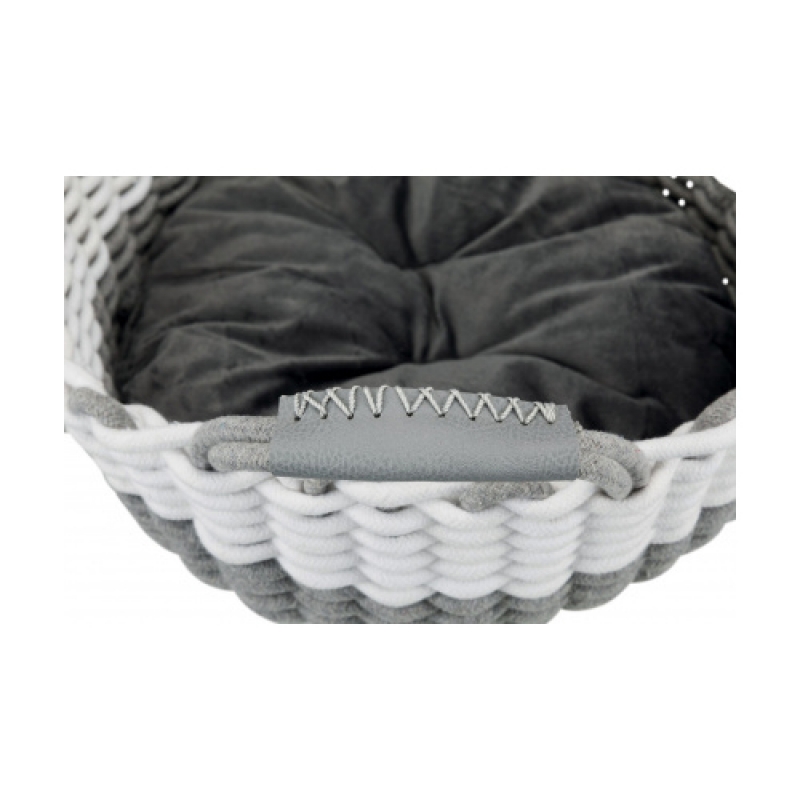 Measurements: ø 45 cm Colour: grey/white cotton mix, woven cushion with plush cover and polyester fleece filling, quilted cushion: washable by hand