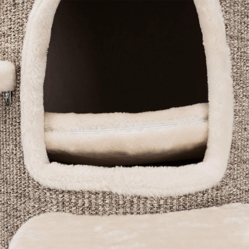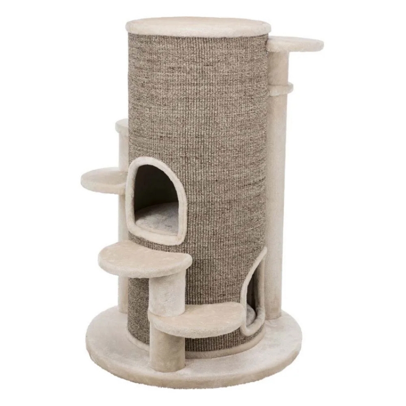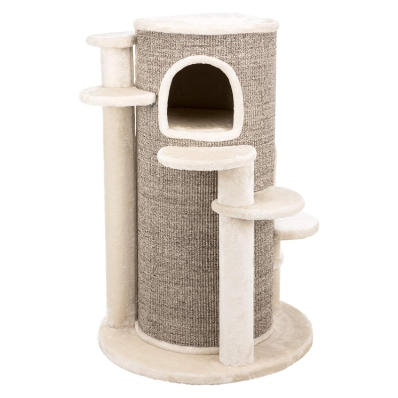 Floor area: ø 76 cm Post: ø 12/10 cm Height: 114 cm Colour: cream/brown mottled Recommended for older animals and those suffering from back and joint problems especially suitable for large cats sisal/premium quality plush (polyester) sisal surface cave fitted with plush (polyester) with climbing aids 4 vital cushions with viscoelastic foam: machine wash up to 30 °C/cushion insert: hand wash perfect molding to the pet's body shape and optimal pressure distribution thick, heavy base plate colour: cream