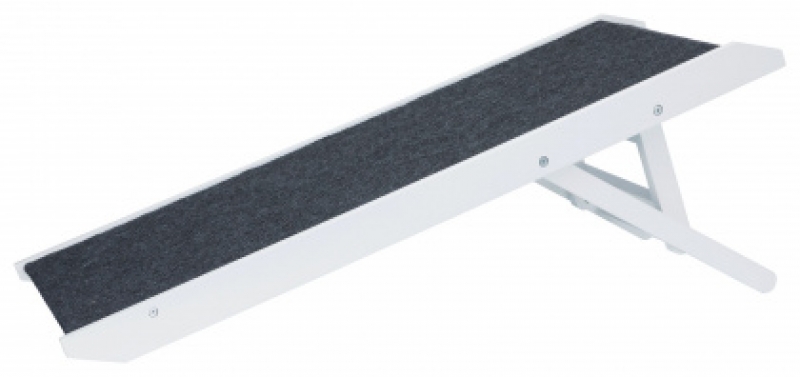 Measurements: 36 × 90 cm up to: 40 kg MDF, varnished, felt non-slip rubber coating for indoors, e.g. as climbing aid for bed or sofa adjustable to three heights (29/36/43 cm) protects the joints of the pet highly recommendable in cases of arthrosis and arthritis can also be used for preventative measures foldable, space-saving storage