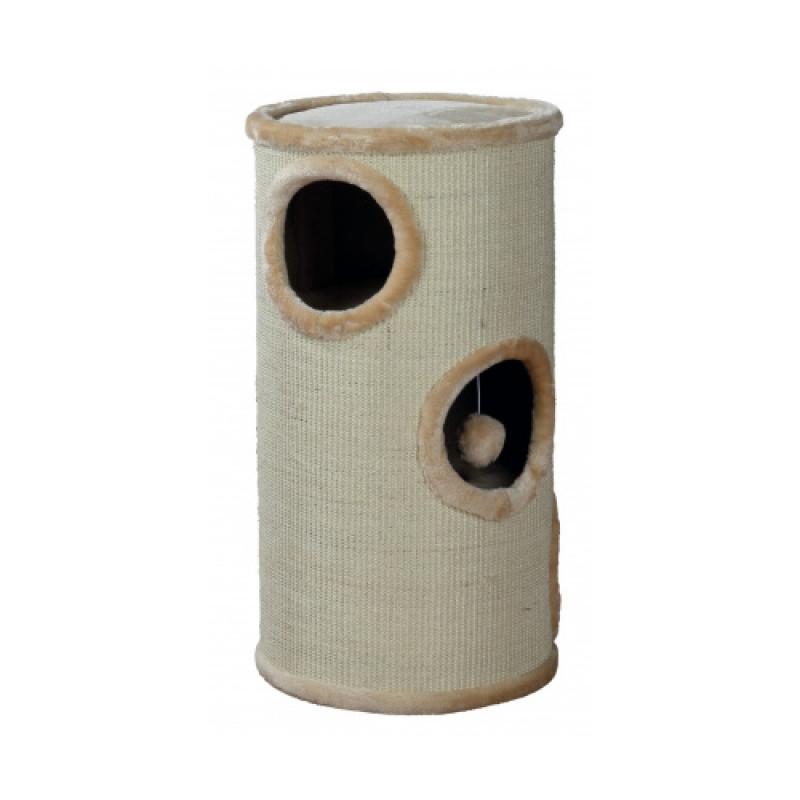 with sisal scratching surface and plush cover 3 storeys (levels 1 and 2 connected) padded platform with toy on string colour: beige Floor area: ø 36 cm Height: 70 cm