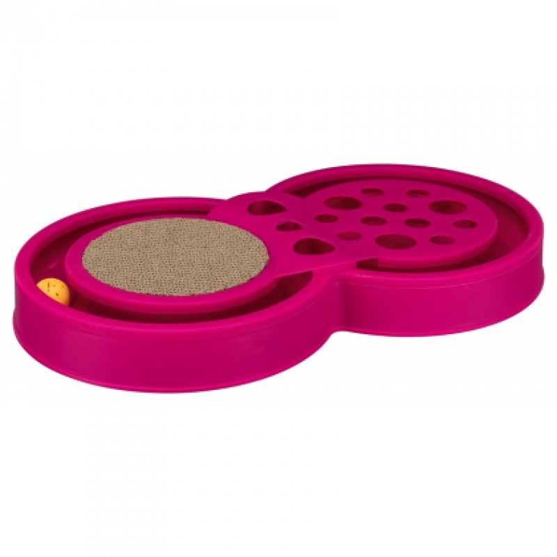 Measurements: 60 × 33 cm plastic/scratching cardboard with playing groove, fumbling area and exchangeable scratching cardboard tennis and rattling ball inside