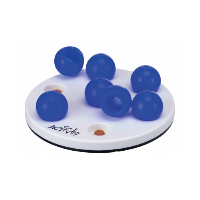 Measurements: ø 20 cm board with 7 ball-shaped covers physical exercise and mental stimulation trains the cat’s skills plastic non-slip due to rubber ring suitable for old or sick cats as well incl. booklet with tips and tricks for optimal training