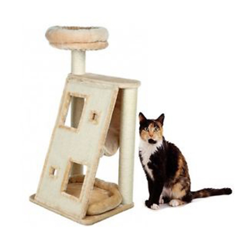 with plush cover posts wrapped in natural sisal base plate and platform with removable cuddly bed cuddly beds: washable by hand with hammock and sisal scratching surface colour: beige 52 × 42 cm ø 9 cm 102 cm