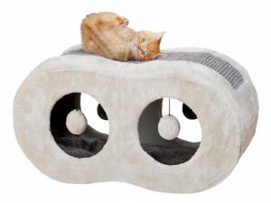Measurements: 56 × 28 × 25 cm with plush cover and sisal scratching surface cave fitted with fleece with reversible cushions: washable by hand with toys on string colour: light grey/platinum grey
