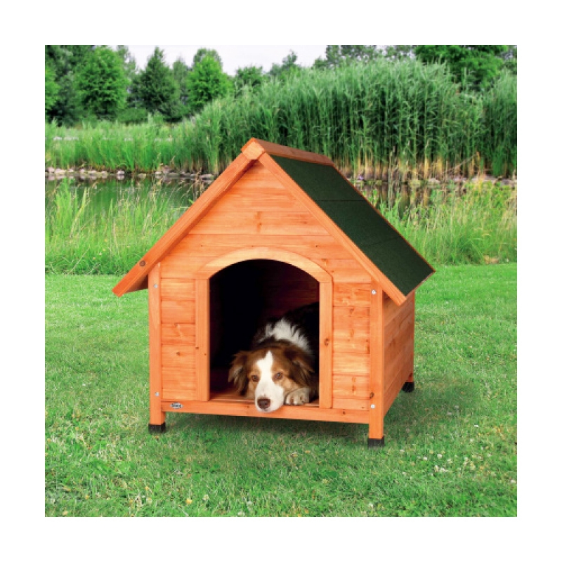 glazed pine mineral surface roofing felt feet adjustable in height provide secure stand legs protect against damp and cold from the ground and provide good air circulation below the kennel Size: S : Measurements: 71 × 77 × 76 cm Size: M : Measurements: 77 × 82 × 88 cm Size: L : Measurements: 83 × 87 × 101 cm Size: XL : Measurements: 96 × 105 × 112 cm