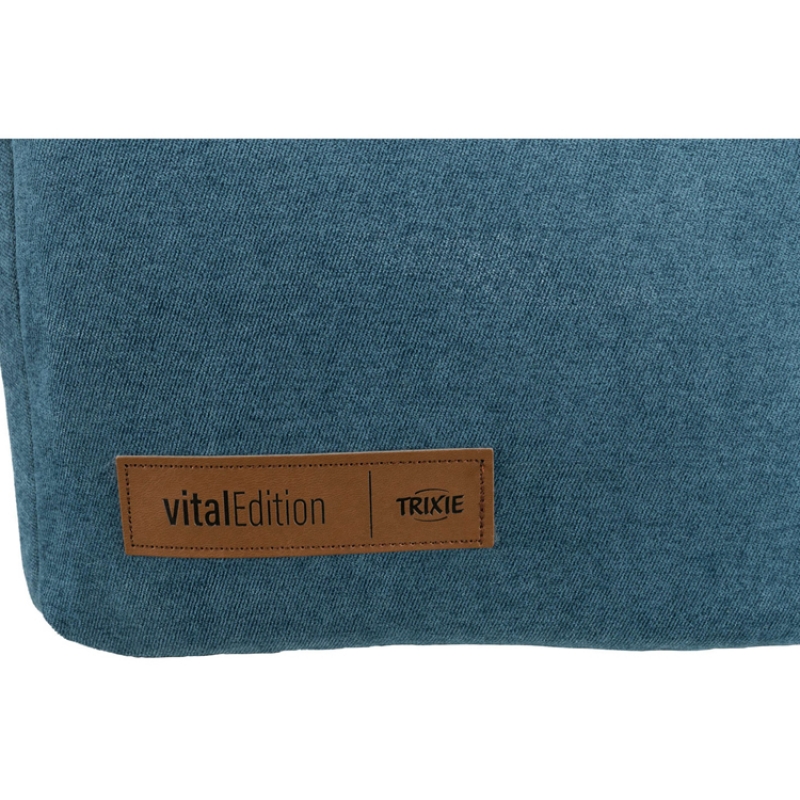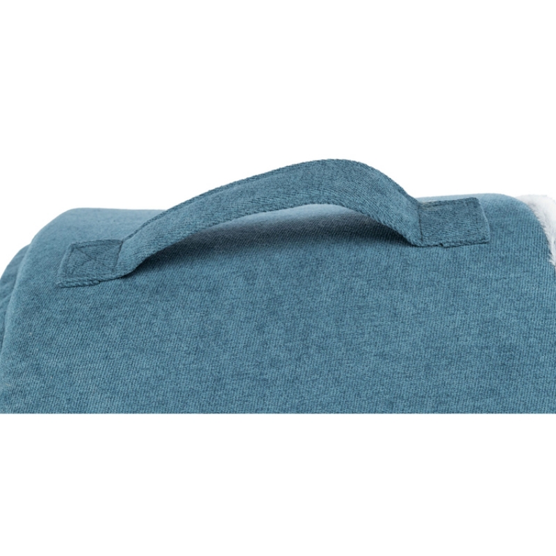 Measurements: 35 × 30 × 40 cm Colour: petrol/white-grey soft upholstery fabric/plush polyester cover foam padding reversible cushion with viscoelastic foam-flakes/foam-flakes (memory effect) cushion cover removable non-slip bottom