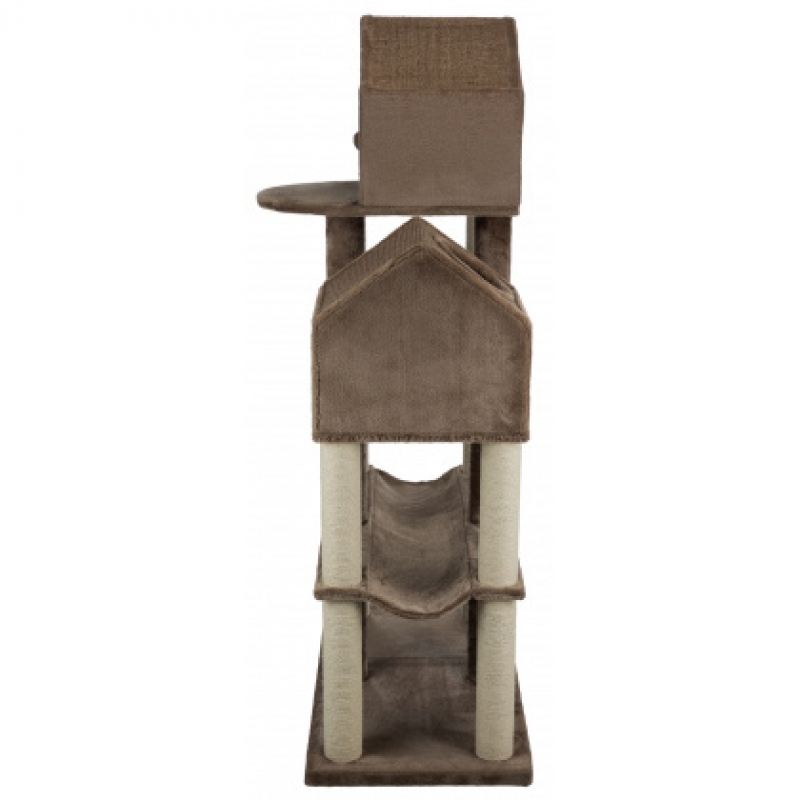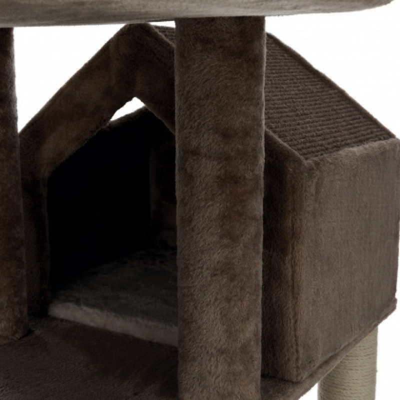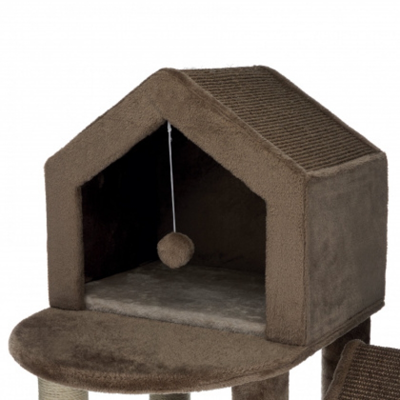 Floor area: 91 × 50 cm Post: ø 9 cm Height: 165 cm with plush cover and sisal scratching surface posts wrapped in jute/plush cave completely fitted with plush with toy on string colour: brown/beige/brown