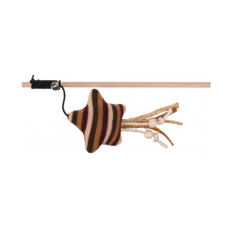 woven fabric (polyester/paper yarn), wood fabric toy on a string with bell