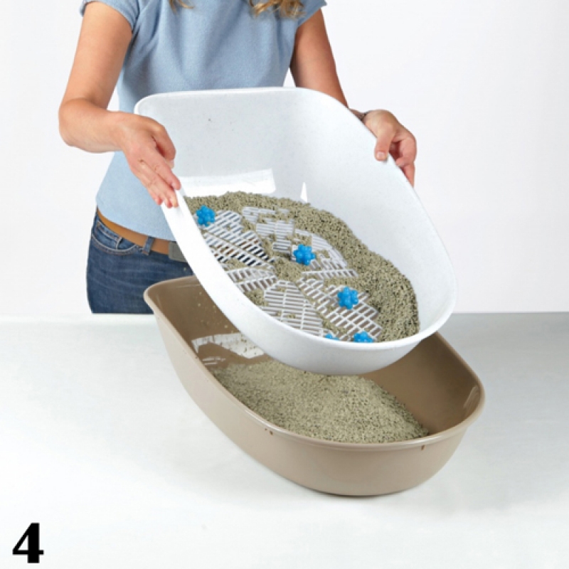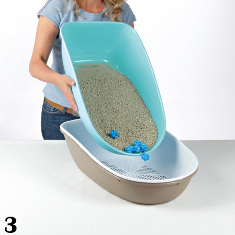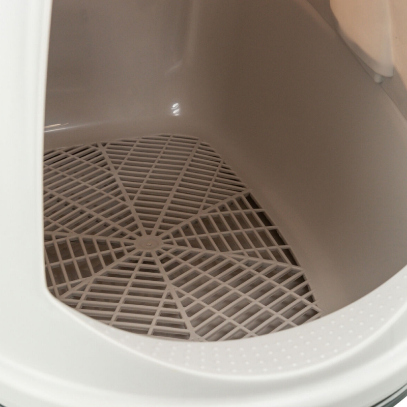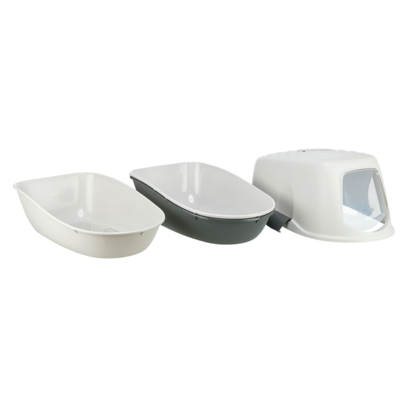with hood, door flap and handle activated carbon filter neutralises bad odours 2 trays and 1 sieve make it quick and easy to clean Easy Click clasps make it fast to open and close hygienic separate waste system low litter consumption Measurements: 39 × 42 × 59 cm