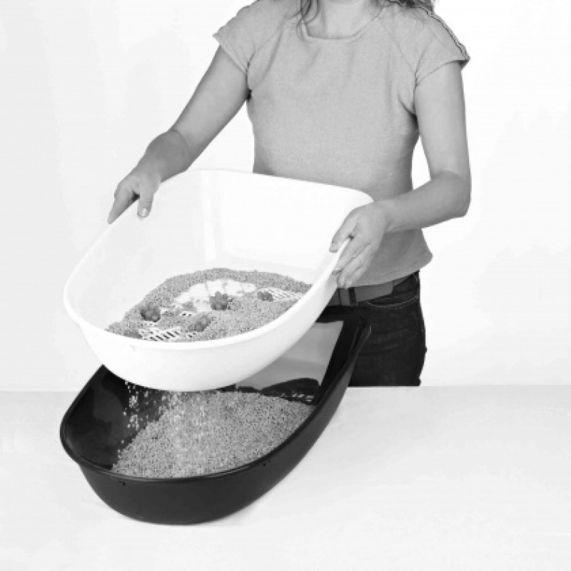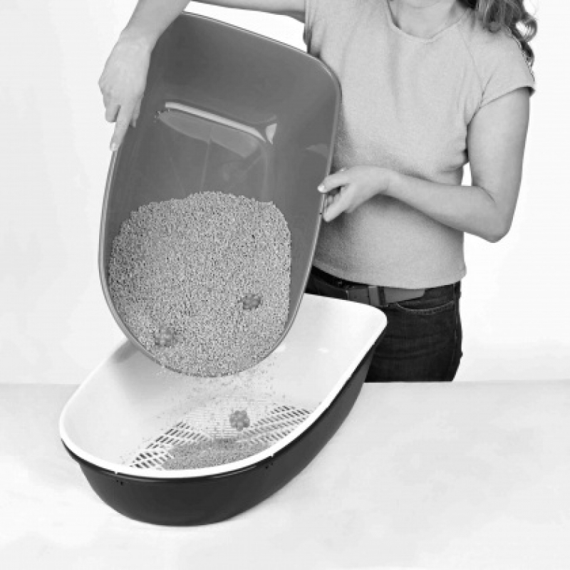 Measurements: 47 × 26 × 69 cm Height: 26 cm hygienic separate waste system low litter consumption 2 trays and 1 sieve make it quick and easy to clean tray and rim are connected with Easy Click clasps