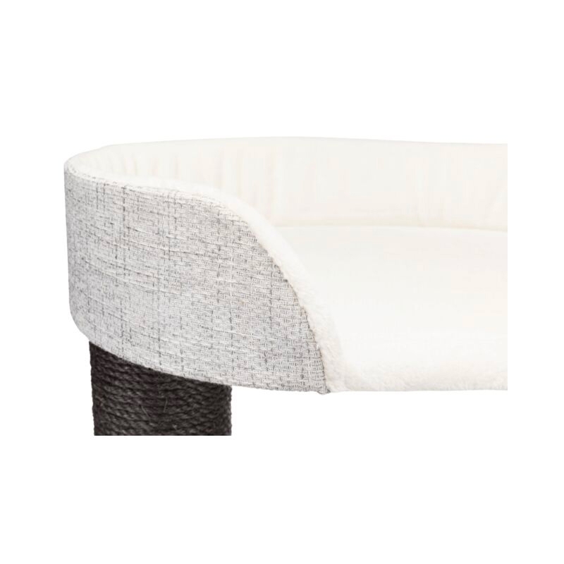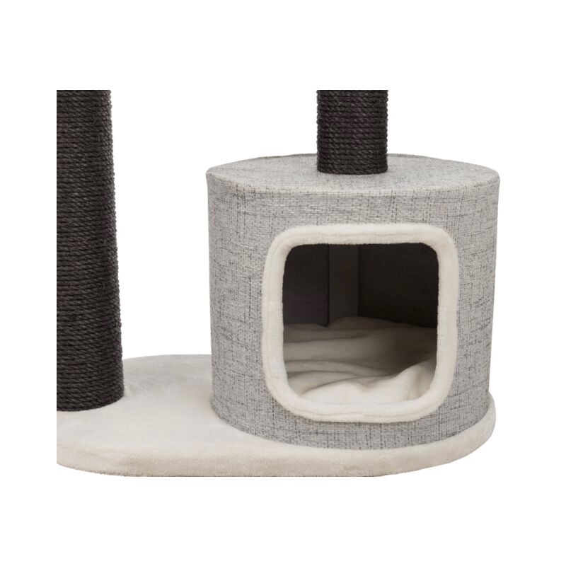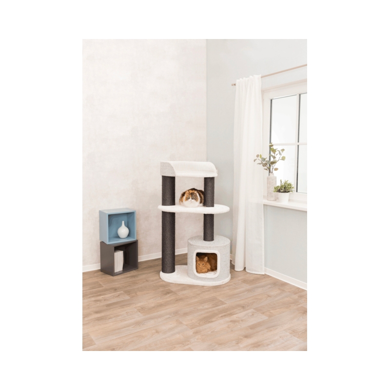 Measurements: 128 cm Floor area: 78 × 48 cm Post: ø 15/12 cm Colour: white/grey Thread Size: M8 Height: 128 cm Especially suitable for large cats sisal: ø 8 mm/plush (polyester): 400 g/m²/fabric (polyester) cuddly bed with padded rim cave fitted with plush/fleece (polyester) and reversible cushion (hand wash) padded platforms colour: white/grey