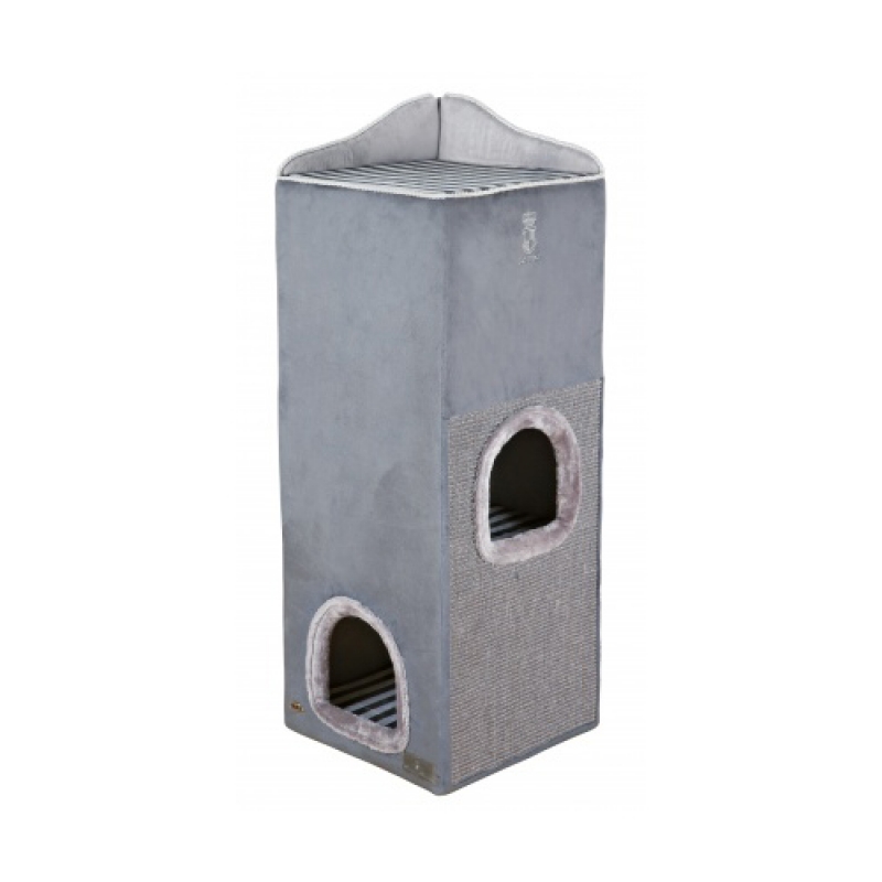 with short-hair plush cover and sisal scratching surface with 3 storeys reversible cushion on each level reversible cushion: washable by hand up to 30 °C with stylish Cat Prince embroidery and decorative cord designed by H.R.H. Princess Maja von Hohenzollern colour: grey Floor area Height 40 × 40 cm 112 cm