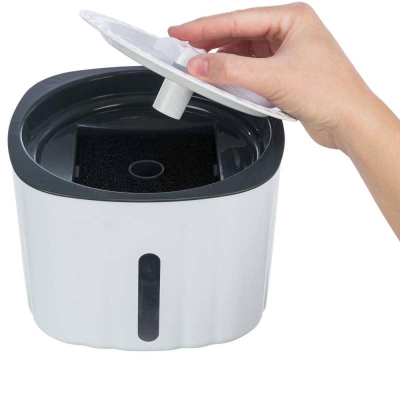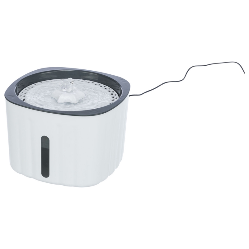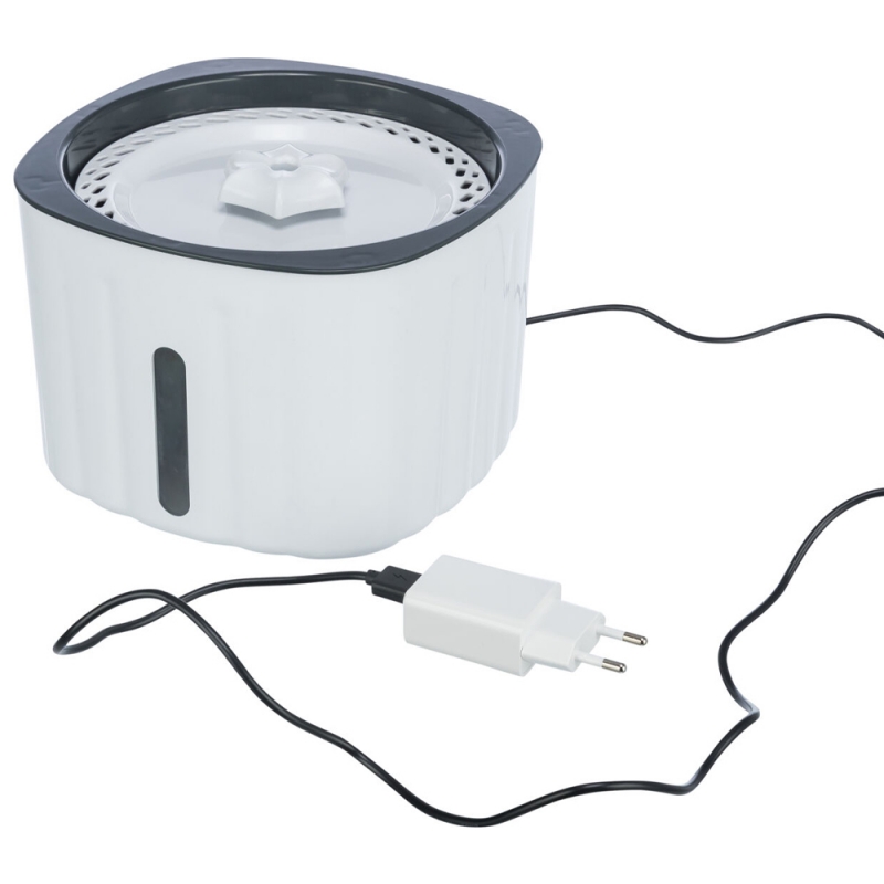 Measurements: 2 l/18.5 × 13 × 18.5 cm plastic level indicator for better content control enriches the water with oxygen cold water through circulation a filter cleans the water pump, interchangeable with USB plug and mains plug Drinking fountains ensure that your dog and cat is always supplied with fresh water. The water is cooled naturally by circulation and enriched with oxygen. The filters built into the drinking fountains also ensure better water quality.