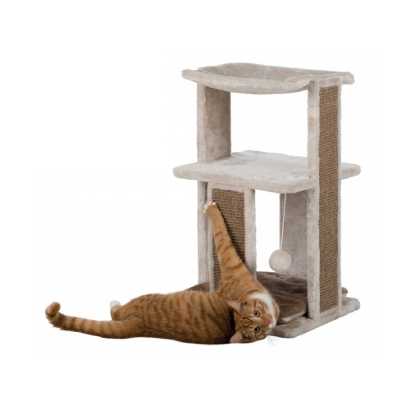 with plush cover and sisal scratching surfaces with nest and platform bottom plate with reversible cushion reversible cushion: washable by hand with toy on string colour: light taupe/brown Floor area: 38 × 38 cm Height: 67 cm
