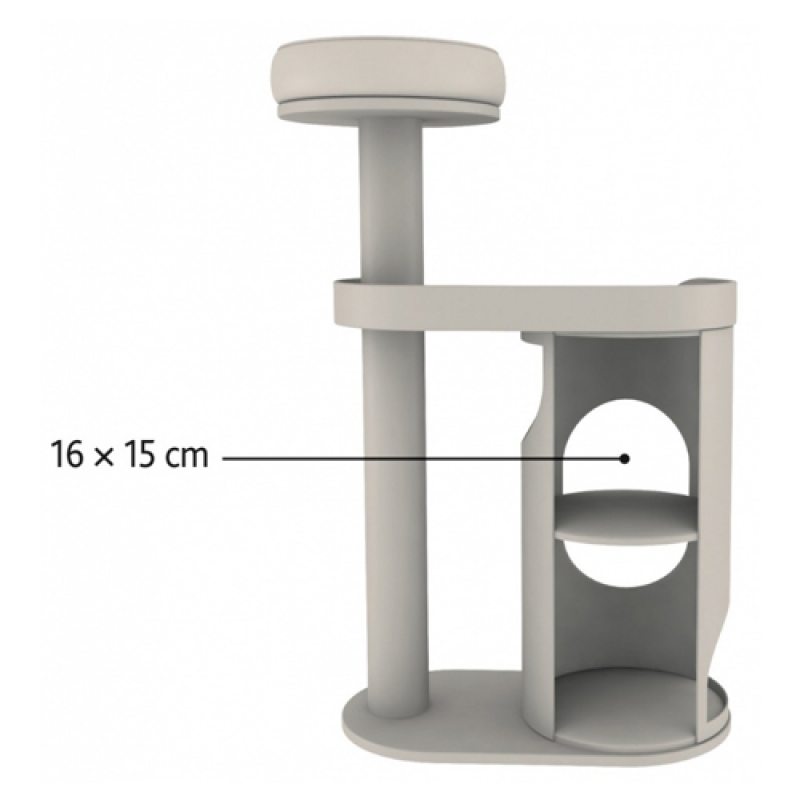 with plush cover posts wrapped in jute cave with sisal scratching surface and padded platform, 2 storeys platform with removable cuddly bed cuddly bed with reversible cushion: washable by hand colour: light grey/brown Floor area: 70 × 38 cm Height: 117 cm