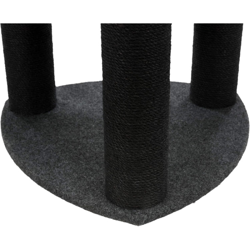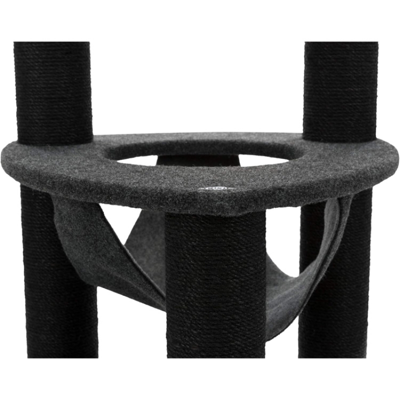 Measurements: 110 cm Floor area: 56 × 57 cm Post: ø 11 cm Height: 110 cm jute/felt (polyester) cuddly bed with padded rim with reversible cushion with two design versions: washable by hand platform with climb-through opening and hammock made of felt colour: light grey