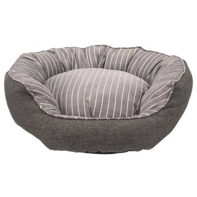 Measurements: ø 50 cm Colour: grey/white woven fabric/cotton look polyester cover polyester fleece filling with firmly attached cushion cover removable non-slip bottom