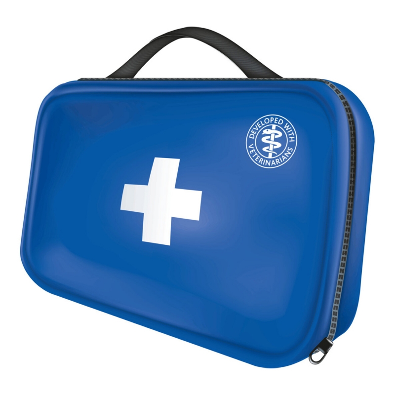 With 8 different components, 30 pieces comprehensive set for fast primary care for external injuries 3 rolls elastic gauze bandages (4.5 m) 2 self-adhesive bandages (5 cm and 10 cm × 3 m) 1 roll of plaster (high adhesive strength, for fastening bandages) 1 roll of plaster (low adhesive strength, for use on fur) 2 rolls padded wadding (4.5 cm and 10 cm × 3 m) 1 pair of bandage scissors 10 gauze pads (absorbent) 10 alcohol pads handy pouch with zipper opening incl. booklet with tips for first aid