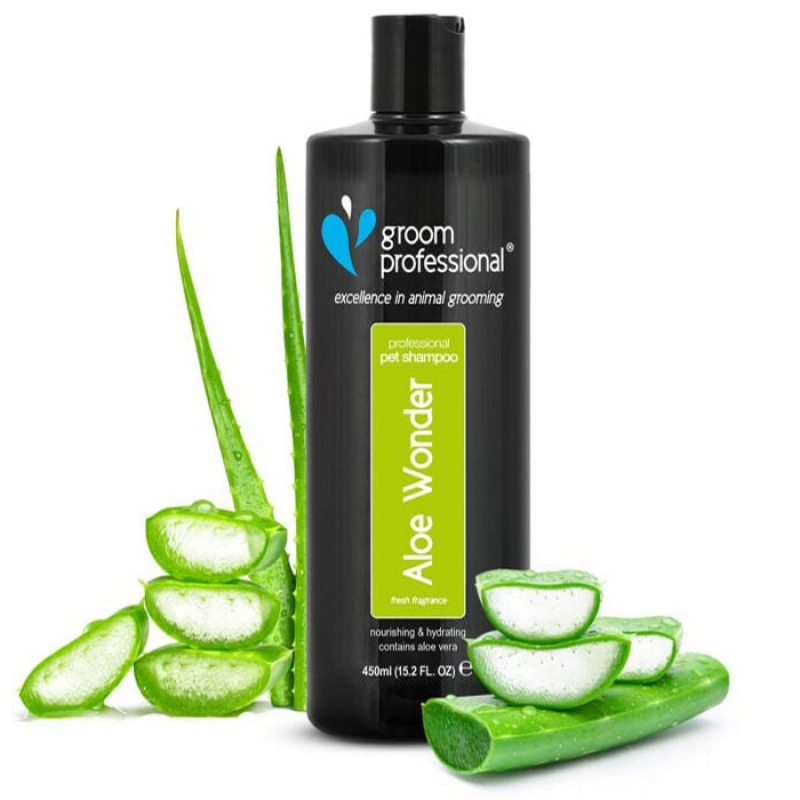 450 ml Aloe Wonder Shampoo is a gentle, salon quality shampoo which contains real aloe vera to help soothe and hydrate dry or irritated skin. It is a deep, yet gentle, cleaning shampoo which leaves the coat soft and shiny. Refreshing, clean scent. Suitable for all coat types.