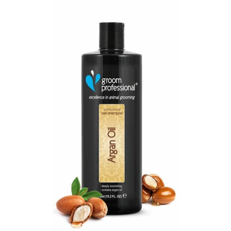 450 ml Argan Oil luxury shampoo contains Argan Oil (Moroccan Oil), which locks in moisture, restores the lustre and shine and restores smoothness. It will repair dry and brittle coats and give new life to dry, tangled, and damaged fur. Contains Essential Fatty Acids (EFA's), which strengthen the hair shaft and heals split ends. Also contains Vitamin E to help maintain a healthy looking coat. It is ideal for use on all coats, as often as necessary. Coat Type - Dry, tangled and damaged hair Dilute 10:1 Scent - Argan Oil