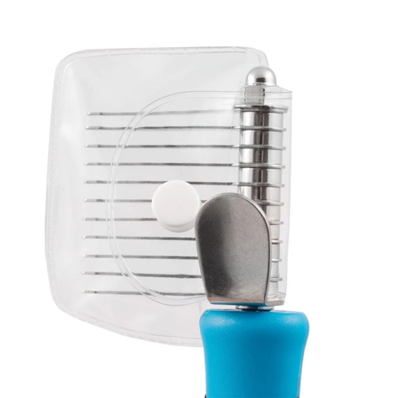 This Groom Professional dematting comb cuts through the worst matting with ease. Comfortable ergonomic grip, even with prolonged & professional use with a sturdy thumb rest which allows you to apply more pressure without losing grip. This comb can be adjusted for light and left handed use.