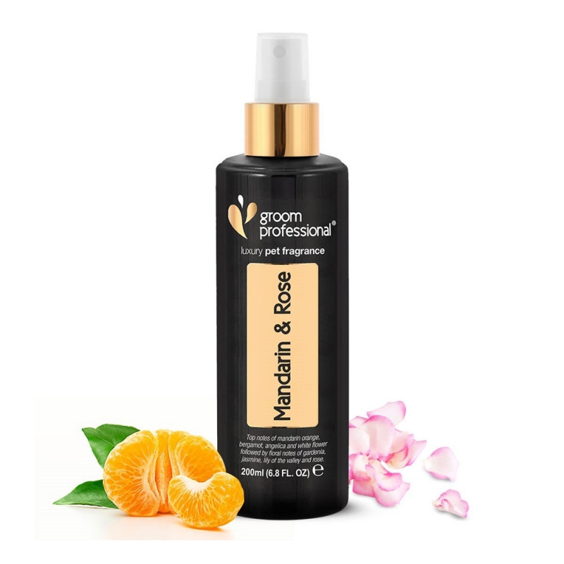 450 ml Mandarin & Rose Shampoo is for the client who deserves that little bit extra. Groom Professional Exclusive shampoos are manufactured in the UK to the highest quality standard. This shampoo scent features top notes of mandarin orange, bergamot and white flower, followed by floral heart notes of gardenia and rose. Leaves the coat soft, clean and shiny