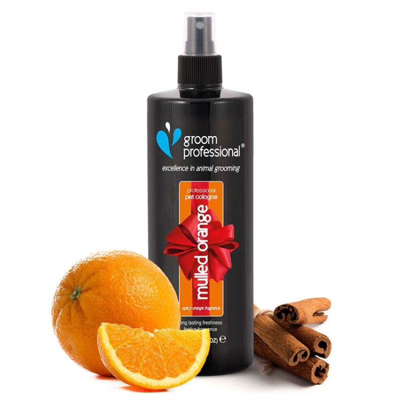 100 ml A new festive cologne for 2014! This is Groom Professional Mulled Orange cologne has a zesty bend of orange, wrapped in warm cinnamon. Also has notes of clove and nutmeg, with fruity hints of apple and lemon all on a vanilla base. The ultimate scent of Christmas cheer! Suitable for all coat types. Unisex scent.