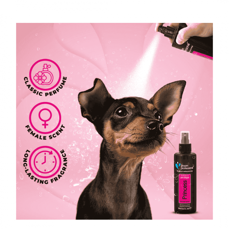 500 ml This unique fresh scent is based upon that of a fine fragrance Designed for princess pooches over 6 weeks old! Sparkling and spicy notes of mandarin, lemon and pepper lead to a floral heart of rose and jasmine Scent lasts on the coat for days! Professional, salon quality formula