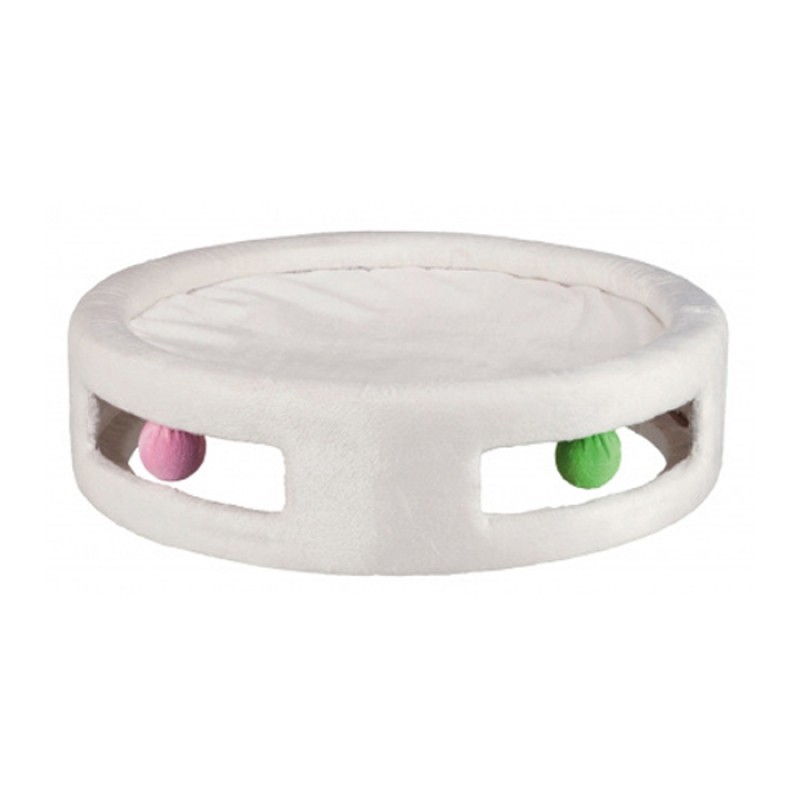 Measurements: ø 44 × 12 cm with short-hair plush cover with toys for placing on a surface