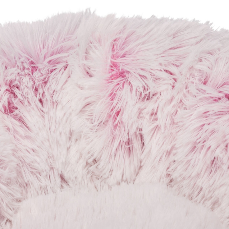 Measurements: ø 50 cm Colour: white-pink long-haired plush polyester cover polyester fleece filling with firmly attached cushion non-slip bottom