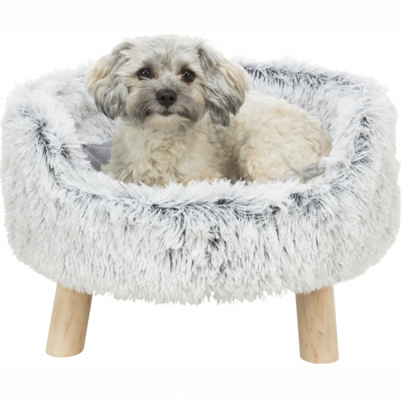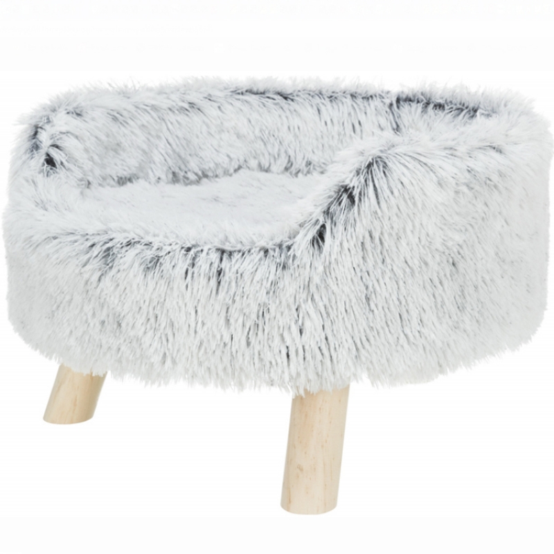 Measurements: ø 46 × 28 cm SOFT Edition long-haired plush polyester cover recliner made from solid wood, padded reversible cushion with cover made of long hair plush/suede look and polyester fleece filling with wooden feet up to 40 kg